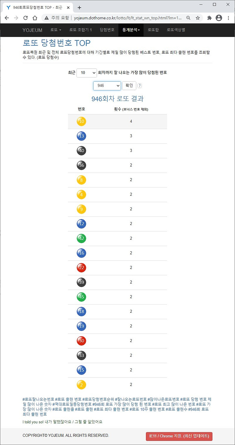 최근 당첨번호 중 약20회의 당첨번호를 분석하여 당첨된 번호 중 top20을 선정한 것입니다 당첨 제외번호는 최근 약20회동안에 당첨된 번호를 제외한 나머지 번호를 보여줍니다.